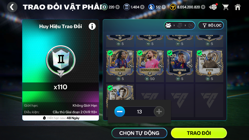 #10005 - ĐH 91B OVR 124 3 CON 117 + 7 CON 116 + 8B COIN - Grn Giao Email
