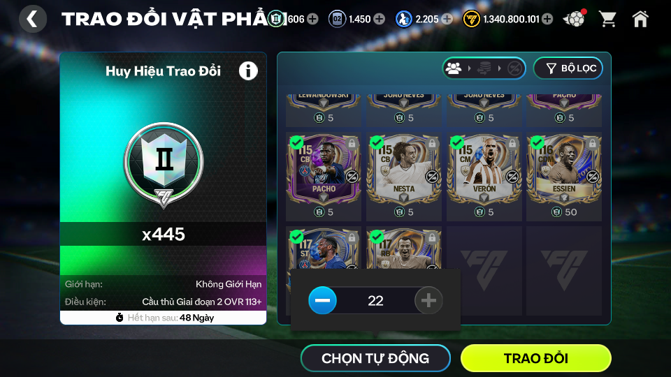 #10093 - ĐH 134B OVR 124 8 CON 117 + 6 CON 116 - Garena SĐT chờ Đổi
